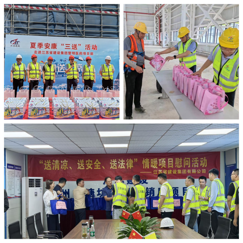 近日,公司领导班子成员分别带队前往暨明医药项目部、西卡项目部、徐州塘坊项目部,给高温中坚守岗位的一线职工送上防暑降温慰问品,对他们的辛勤工作表示感谢,并叮嘱项目部在保证安全生产和工程质量的同时,做好职工的防暑降温工作。