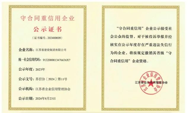 自2003年pa捕鱼网官网首次获得省级“守合同重信用”企业称号以来,长年保持该项殊荣,公司将以再次获得“守合同重信用”企业为契机,进一步加强合同管理和信用建设,不断提升企业的核心竞争力,为客户提供更加优质、可靠的产品和服务,为推动建筑行业的健康发展贡献更多力量。