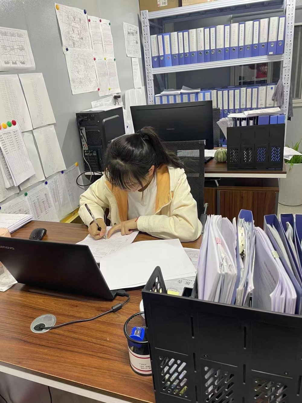 顾诗佳(25岁,助理工程师):塘坊二期A地块资料员,作为一名毕业两年的大学生,她能够像其他男生一样吃苦耐劳,工作认真负责,及时收集和整理大量工程资料,为项目顺利推进做好后勤保障。
