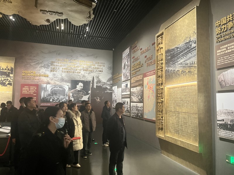 淮海战役纪念馆通过展示大量珍贵的历史照片、革命文物和实物,真实反映了淮海战役的光辉历程,形象再现了革命先烈英勇无畏的英雄气概。在讲解员的带领下,同志们深入了解了淮海战役的光荣历史,体验了跨越时空对话、模拟发送电报、倾听革命战士的录音等项目,再现了中国人民解放军崇高的理想和坚定的信念。随后,全体人员瞻仰了淮海战役烈士纪念塔,烈士纪念塔巍峨高耸,周围松柏苍翠、静穆庄严,纪念塔一百二十九级台阶上的烈士名录和题词无不展现出当年淮海战役的惨烈,也彰显了我国革命历史的艰辛与伟大。